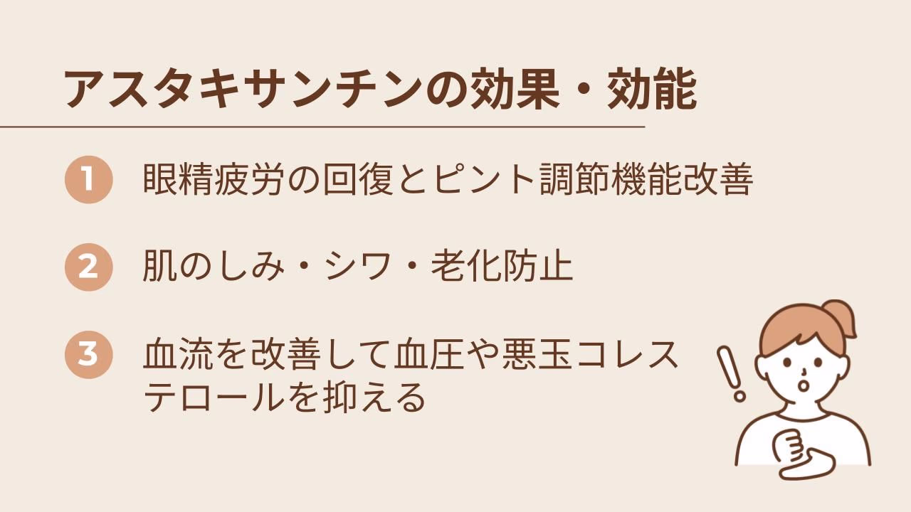目の老化防止に効果的なアスタキサンチンですが、具体的にどのような効果があるのでしょうか。