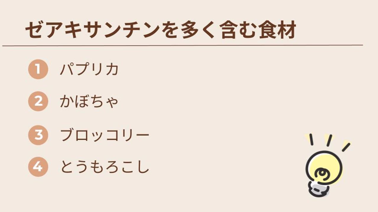 ゼアキサンチンもルテインと同じく脂溶性なので、油を使った調理法で摂取するとよいでしょう。