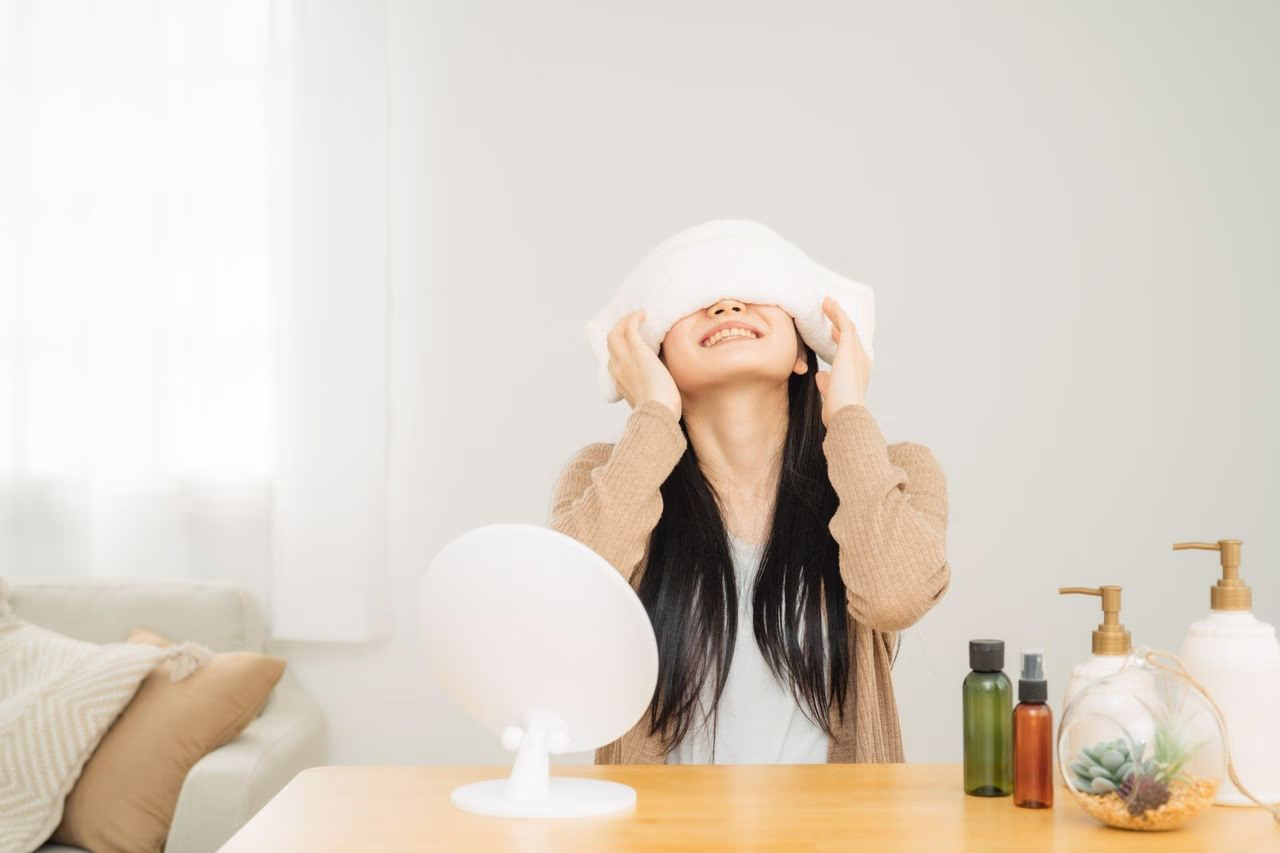 また、蒸しタオルやホットアイマスクで目元を温めるのもおすすめです。目の周りの血管が広がり、滞っていた血流が巡ることで、むくみの原因物質が流れやすくなります。
