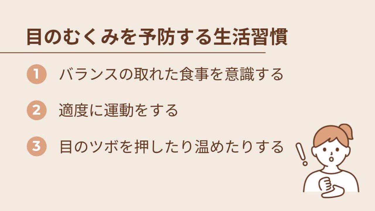 目のむくみの多くは病気そのものではなく、日々の生活習慣の積み重ねによって引き起こされています。