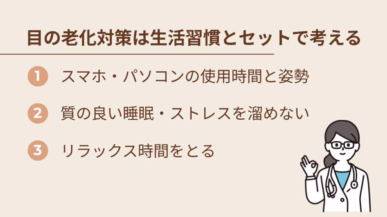 - 目の老化対策は生活習慣とセットで考える