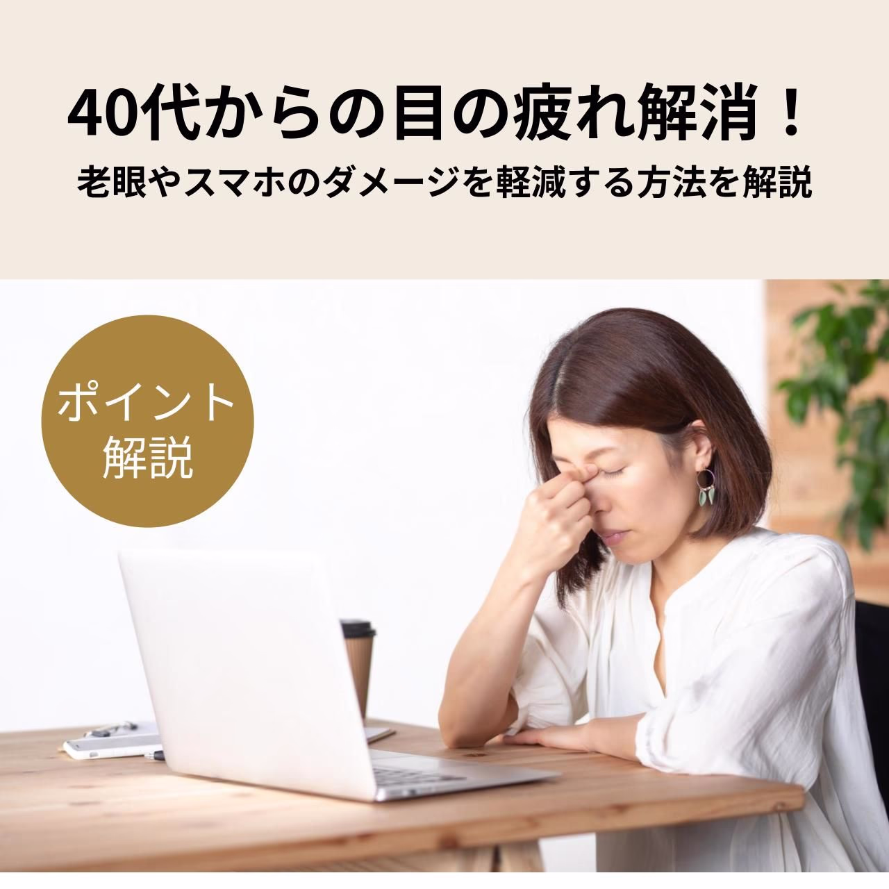 40代以降になると、目のピント調節機能の低下やスマホ・PCの使用によるストレスが原因で、目の疲れが抜けにくくなります。
