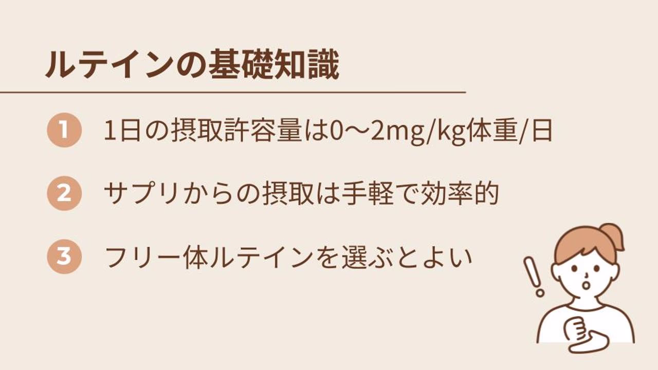 しかし、目の健康維持のために、ルテインを摂取する習慣は重要だと考えられます。