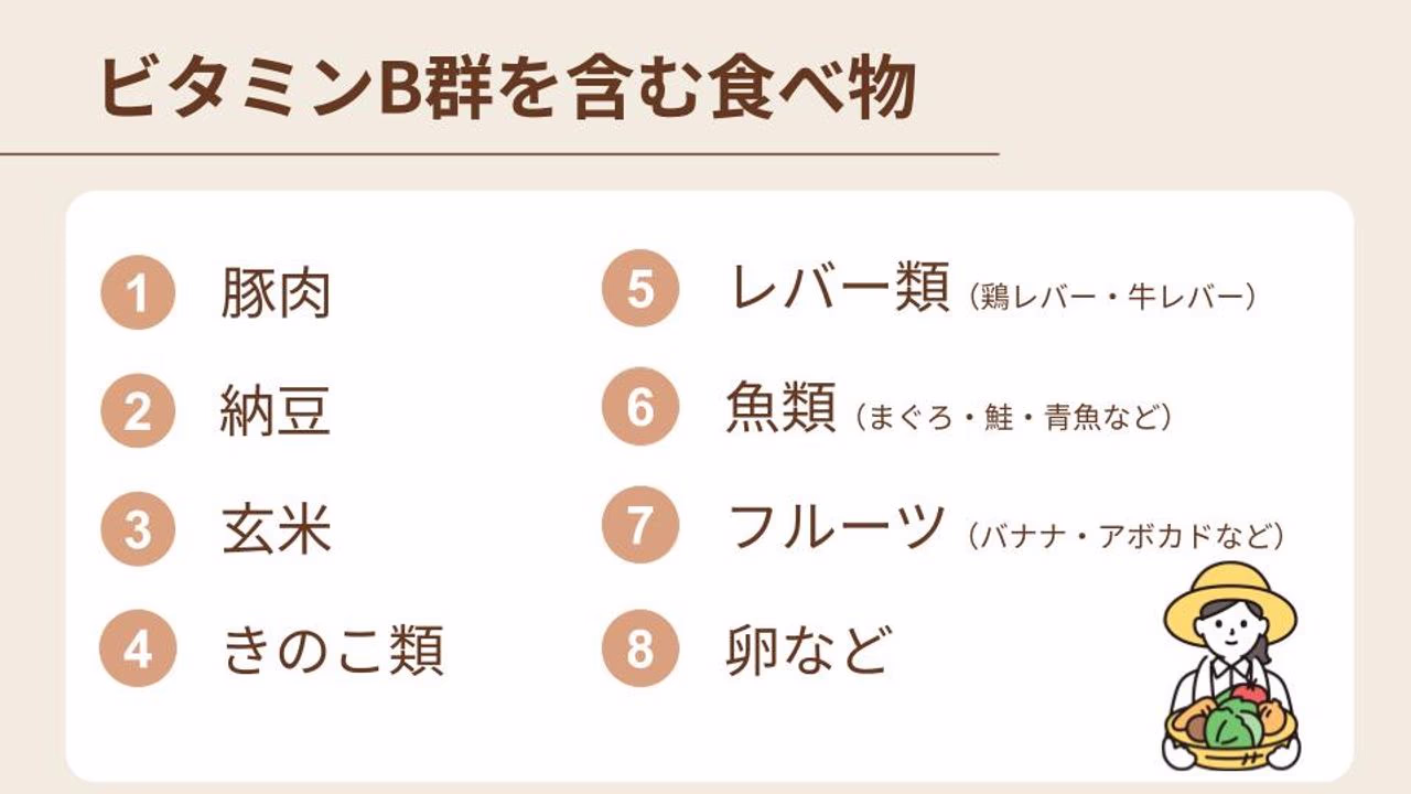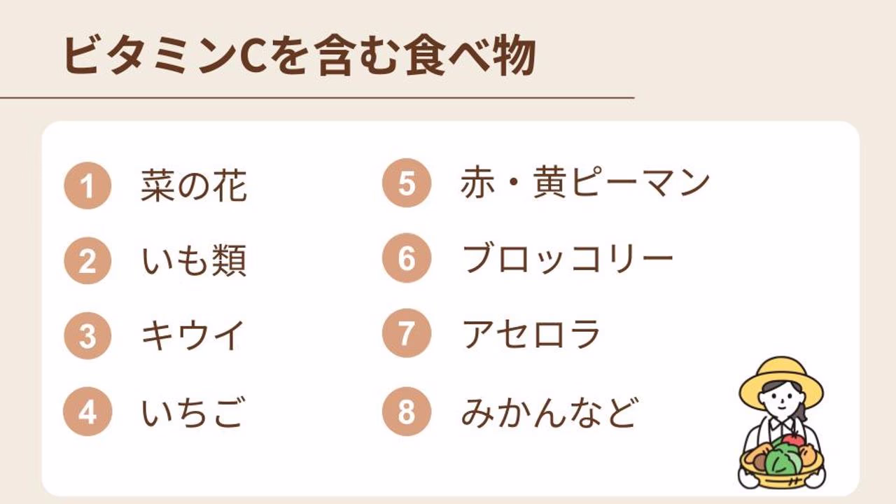 また、水溶性のビタミンのため体外から排出されやすい性質である上に、ストレスや疲労、アルコール摂取などでも消耗されやすいため、毎日の食事に取り入れることが大切です。
