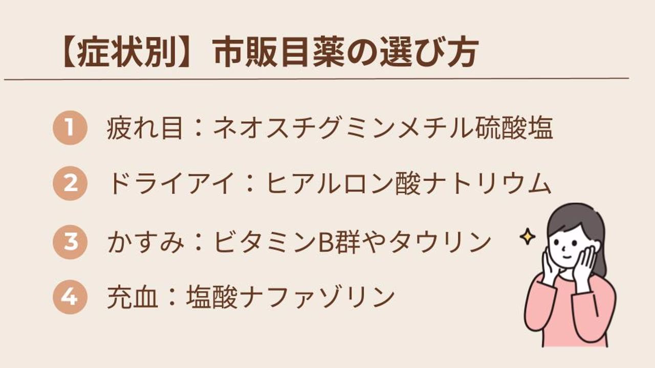 - 目薬は「症状に合う成分」を選ぶことが重要