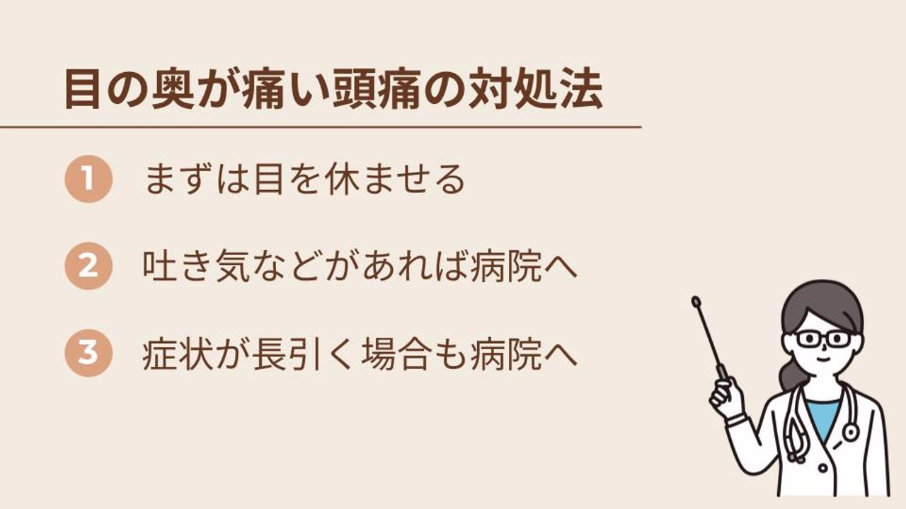 目の奥が痛いと感じたとき、真っ先に行ってほしいのは「目と体を休めること」です。