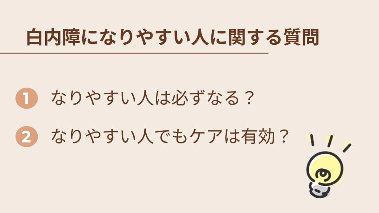ここでは、多くの方が抱く「白内障のなりやすさ」に関する疑問について、Q&A形式でお答えしていきます。