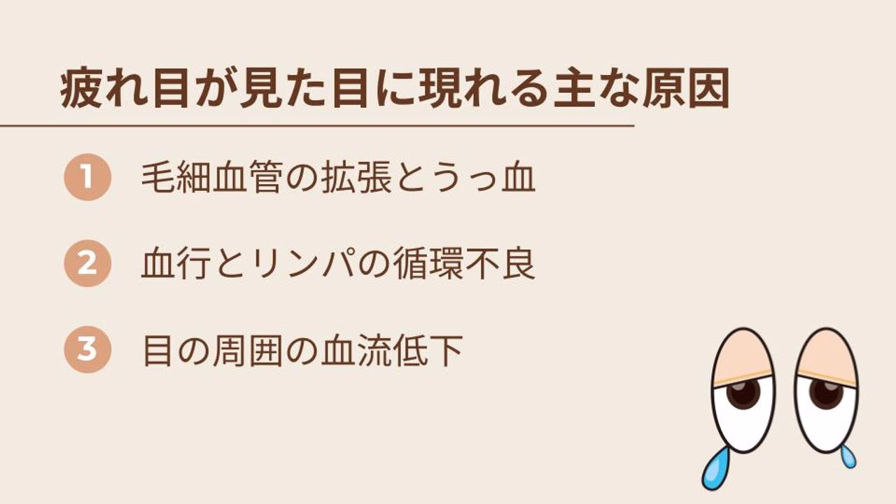 - なぜ疲れ目が見た目に現れるのか?主な原因を解説
