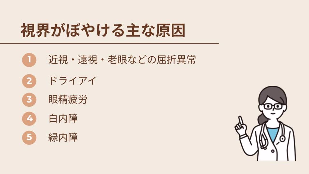 一言で「視界がぼやける」と言っても、背景にはさまざまな原因が隠されています。