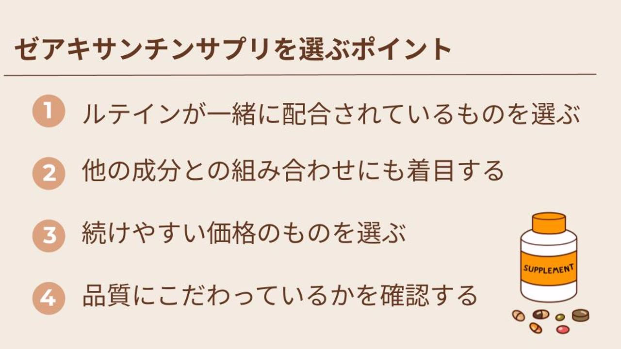 そこで、ゼアキサンチンサプリを選ぶための4つのポイントをご紹介します。