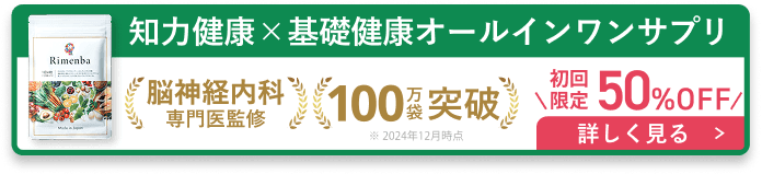 初回は50%オフで購入でき、定期購入の縛りもありません。日々の習慣にRimenbaを取り入れ、脳の健康を見直してみてはいかがでしょうか。