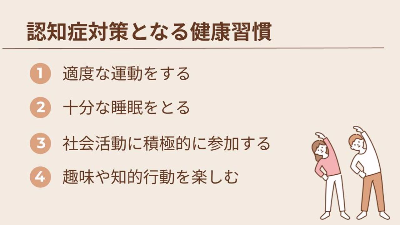 十分な睡眠を取ることも、認知症対策としては重要です。