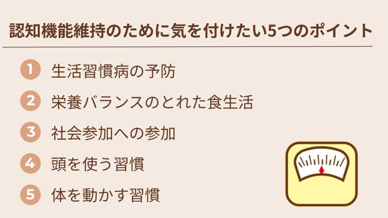 生活習慣病は認知機能と密接に関連しているので、栄養のバランスに気を配りましょう。
