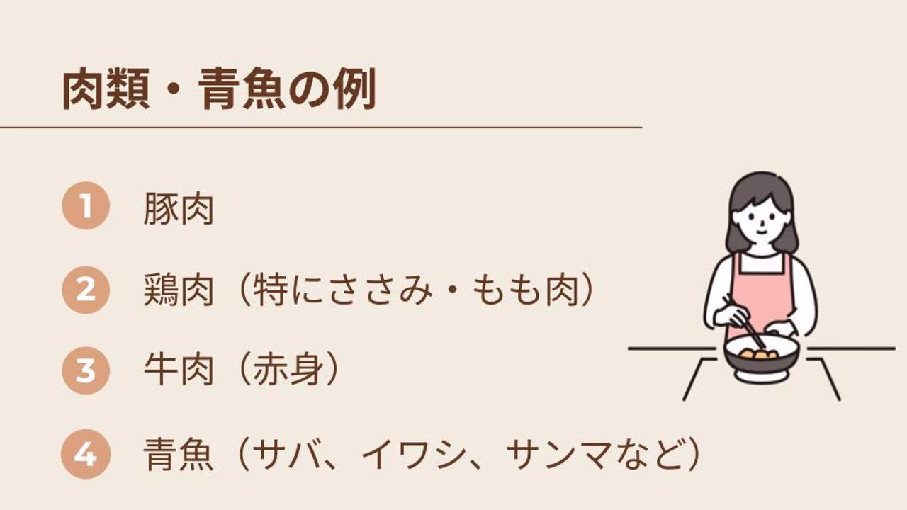 肉や魚に含まれるタンパク質は代謝の過程で熱を生み出し、青魚に含まれるDHA・EPAは血行を促すため、体を内側から温めてくれます。