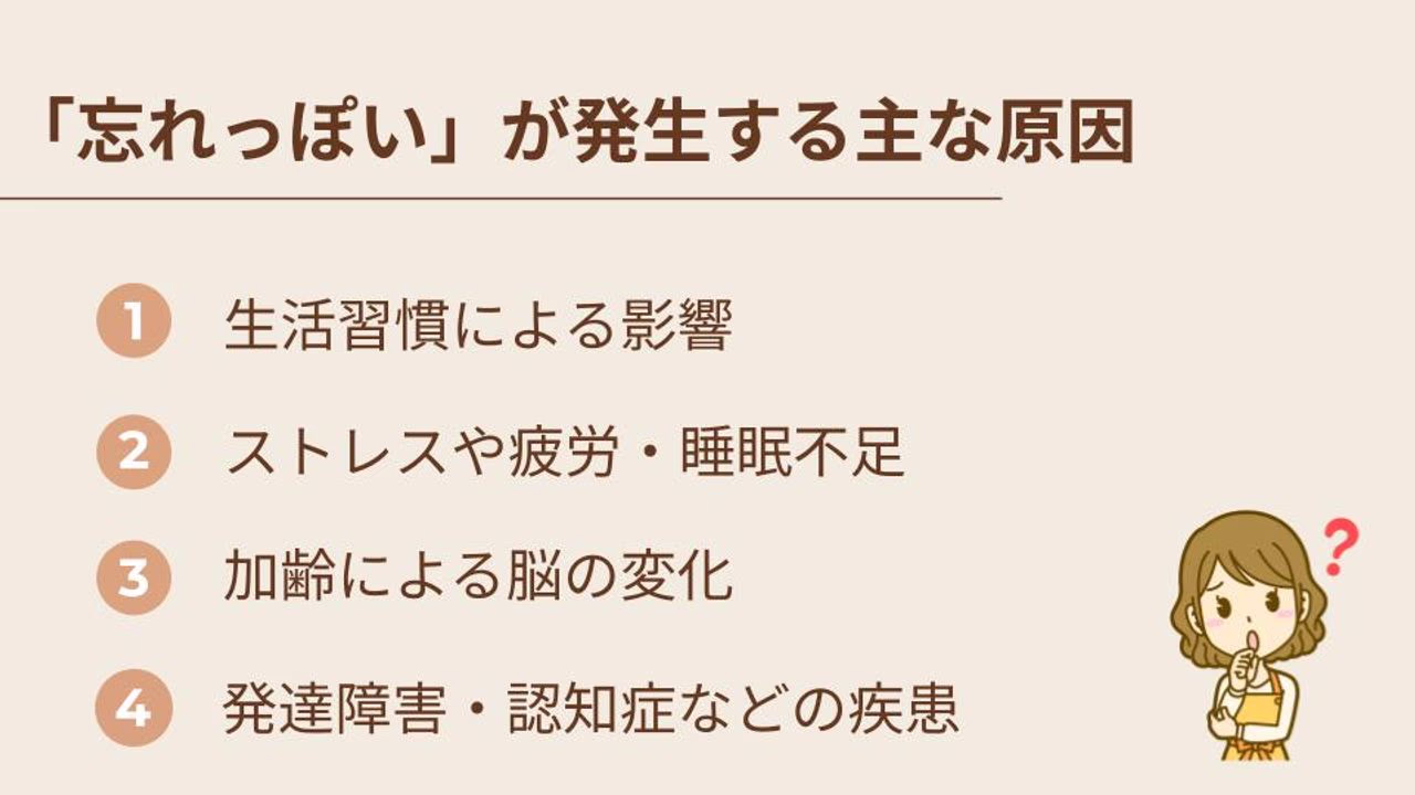 ここでは、「忘れっぽい」が発生する主な原因について解説します。