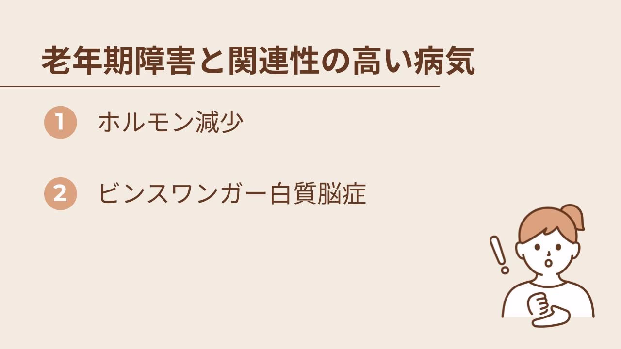老年期障害と関連性の高い病気には、次の2つが挙げられます。