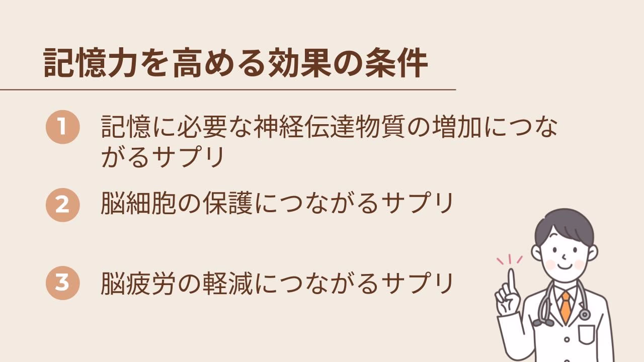 記憶力を高める効果に期待できる3つの条件を紹介します。