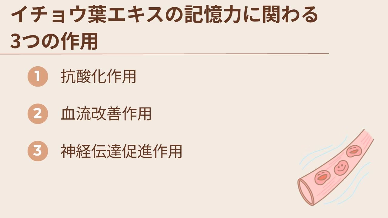 - イチョウ葉エキスの記憶力に関わる3つの作用