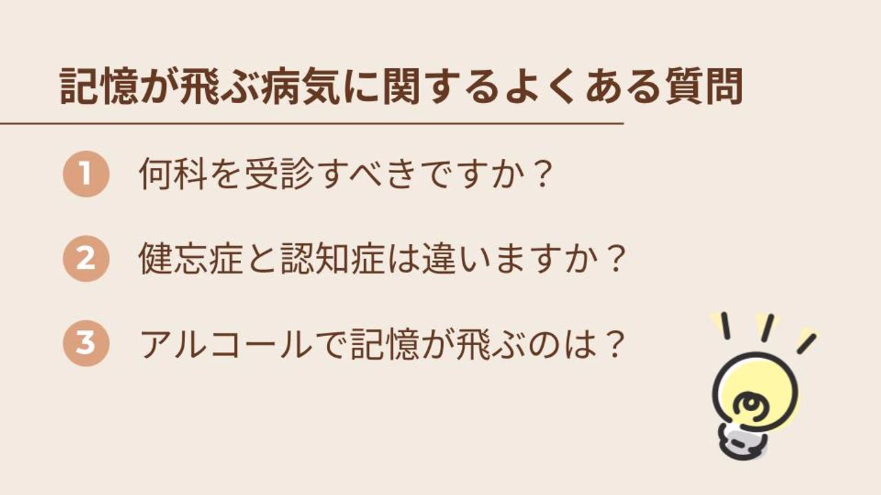 ここでは、記憶が飛ぶことに関して、多くの人が疑問に思う点をQ&A形式でまとめてみました。受診先の選び方や、似た言葉との違いなど、気になる項目をチェックしてみてください。