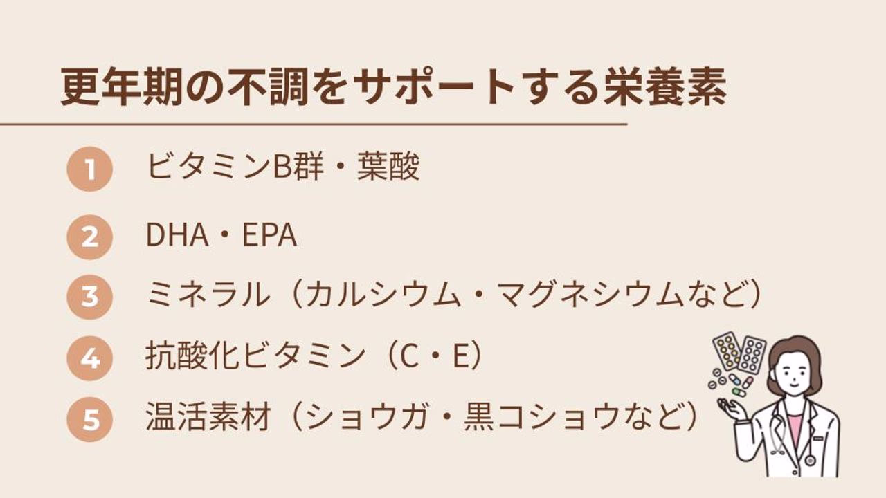 更年期を迎えると、食事だけでは必要な栄養を十分に補うのは難しいものです。