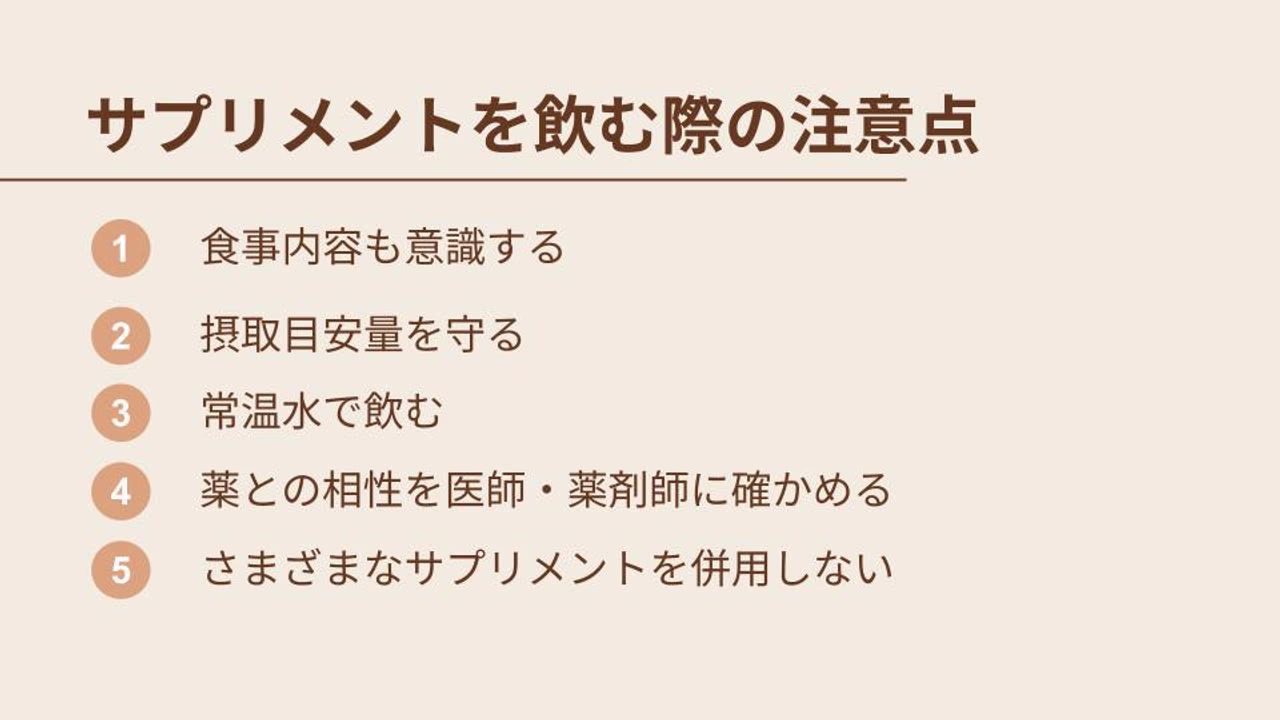 - サプリメントを飲む際の注意点