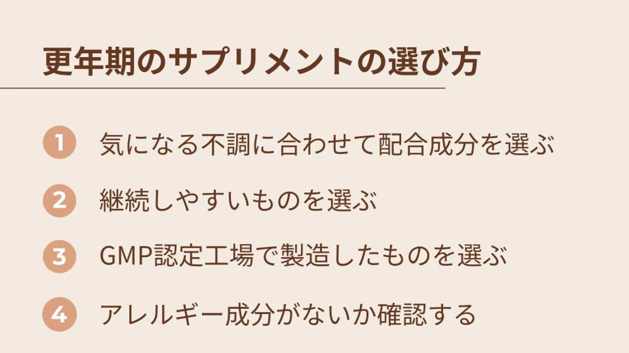 - 更年期のサプリメントの選び方