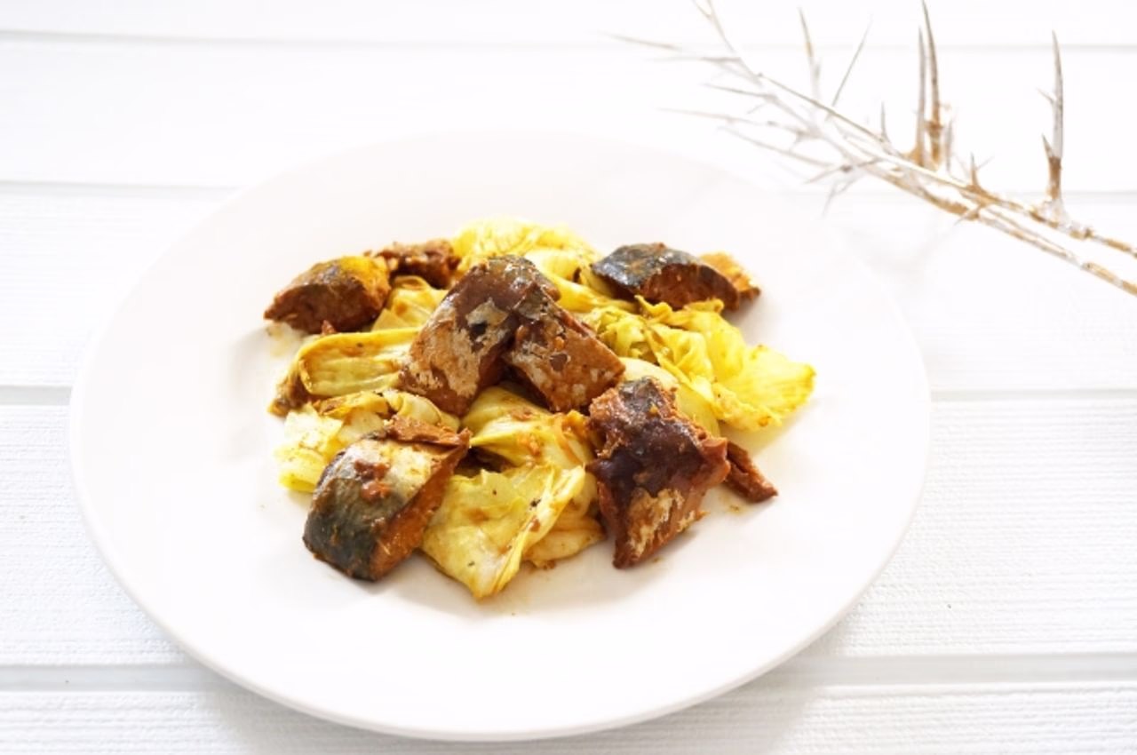サバとキャベツのカレー炒め