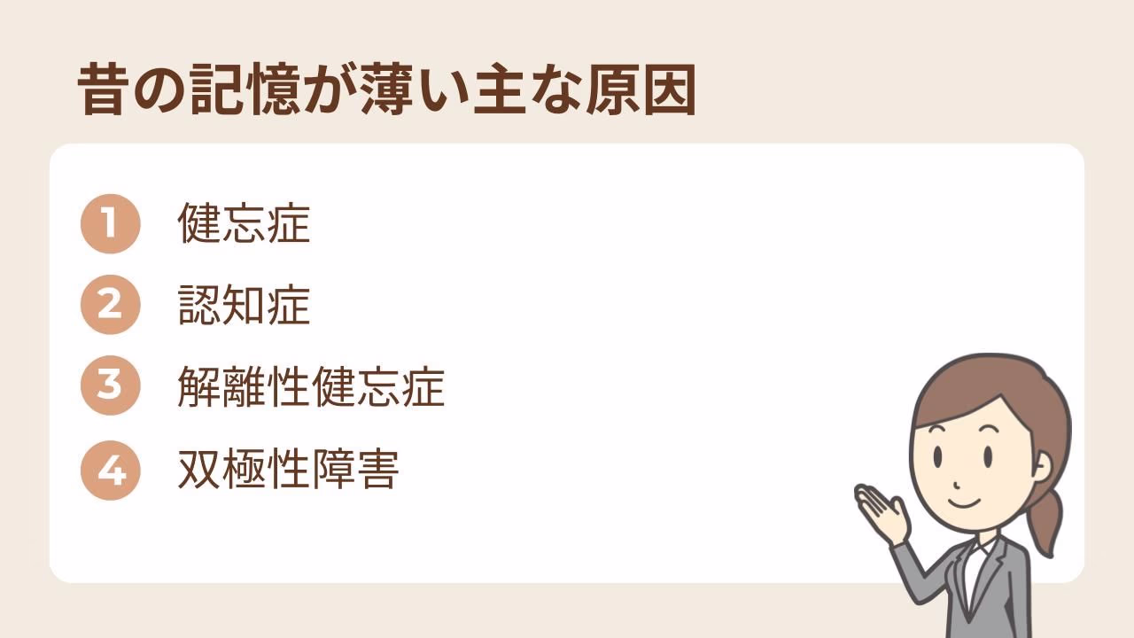 昔の記憶が薄くなる原因はさまざまですが、単なる加齢現象だけでなく、健忘症や認知症などの可能性もあります。