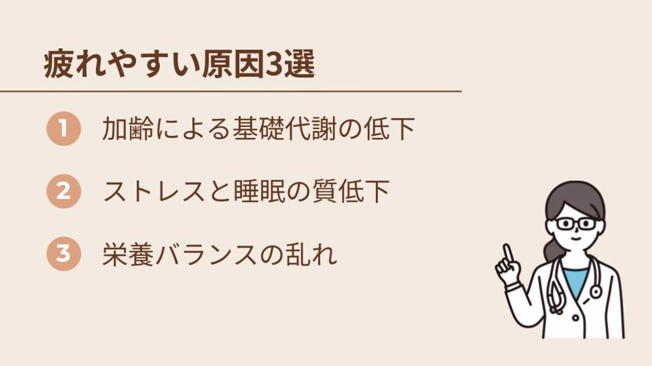 ここでは、代表的な原因として3つのポイントに絞って、一つひとつ丁寧に解説していきます。ご自身の状況と照らし合わせながら、疲れの根本原因を探っていきましょう。