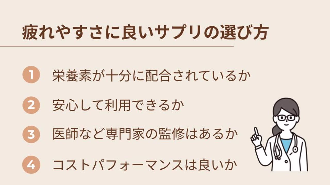いざサプリを試してみようと思っても、「種類が多すぎて、どれを選んだらいいかわからない」と迷ってしまいますよね。疲れやすいという悩みを解決するためには、やみくもに選ぶのではなく、いくつかのポイントを押さえておくことが大切です。