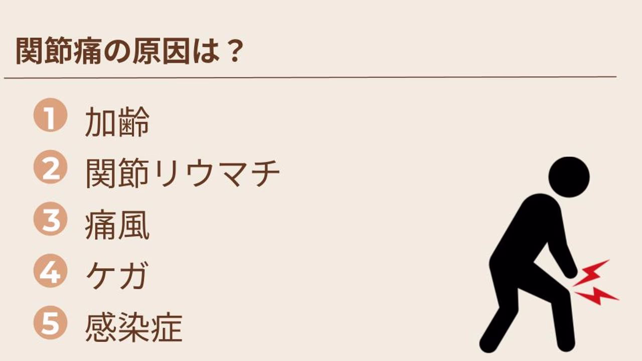 関節痛は、加齢による変形性関節症が原因の場合もありますが、他にも原因があるため、年齢のせいとは言い切れません。ケガ、関節リウマチや痛風などの病気が原因になることもあります。まずは、関節痛の原因を特定しましょう。