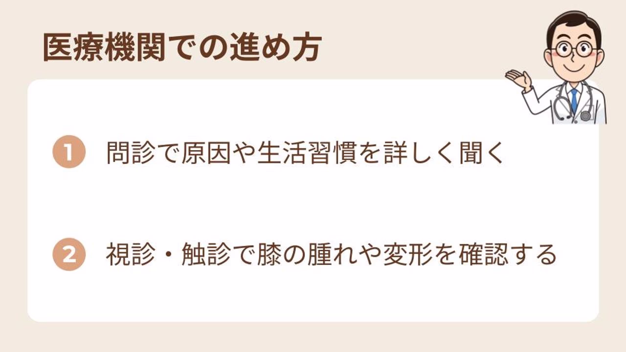 ここでは、医療機関で膝の痛みを診断する際の基本的な流れについて解説します。