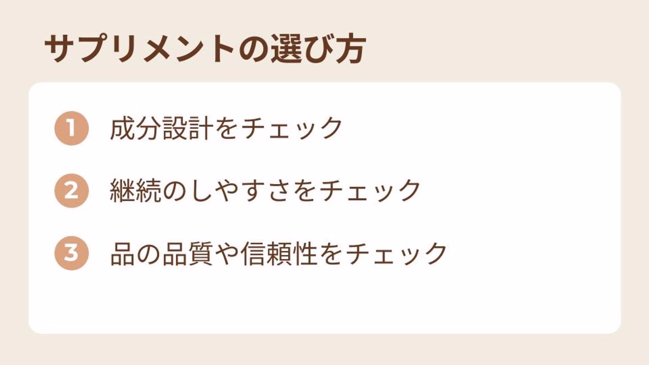 価格が高すぎて経済的な負担になると、商品を変えたりサプリをやめてしまったりする可能性があります。毎日続けるためにも、無理のない範囲でコスパのよいサプリを選ぶことが大切です。
