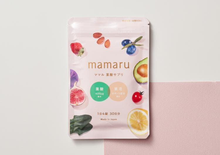 mamaru (ママル) 葉酸サプリは妊娠中に不可欠な栄養素をオールインワンで配合されている菌活もできる葉酸サプリメントです。厚生労働省の定める葉酸400㎍、鉄分、ビタミンやミネラル20種類以上、更に乳酸菌250億個以上と食物繊維配合で妊娠中の体調管理をサポートします。