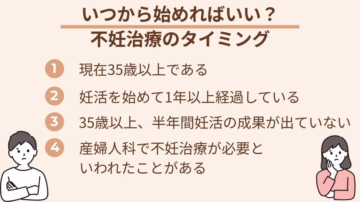 不妊治療を検討するタイミングにはいくつかの目安があります。