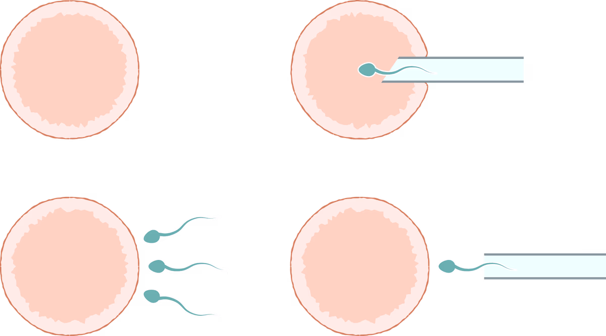 - 顕微授精:顕微鏡を使って、取り出した卵子に1つの精子を直接注入する