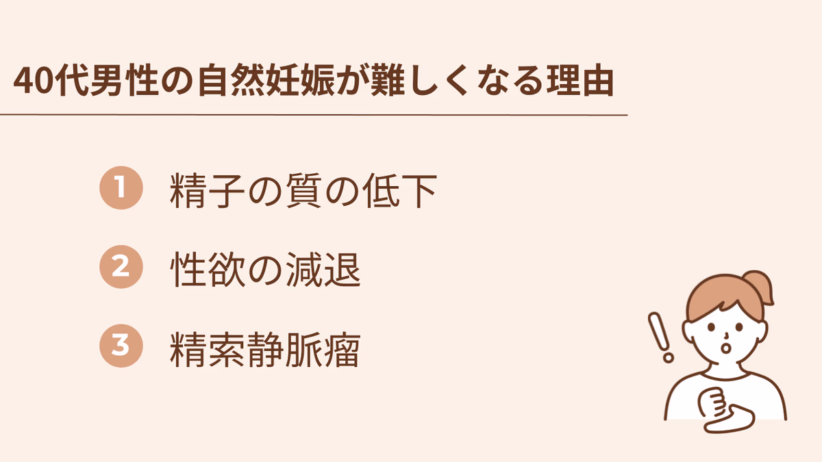 まずは40代男性が自然妊娠できる割合と、自然妊娠が難しくなる理由について解説していきます。