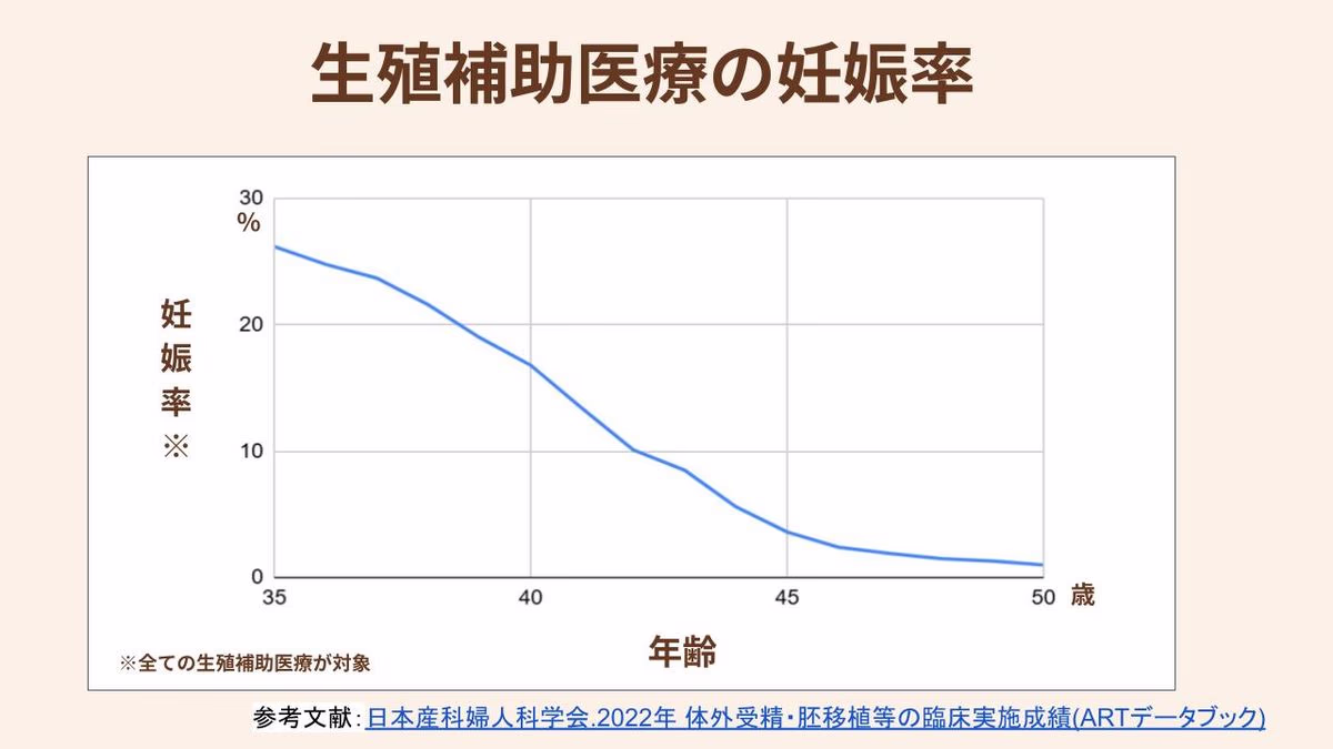 35歳を過ぎると自然妊娠率だけでなく、生殖補助医療を受けた場合の妊娠率も低下していきます。