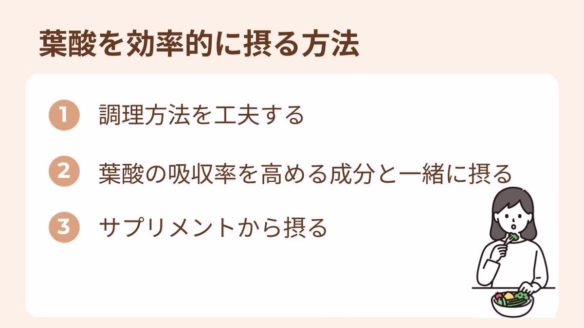 そのため厚生労働省では、妊娠を希望する女性や妊娠中の女性に、通常の食事に加えサプリメントなどからも葉酸を摂取することを推奨しています。(※3)
