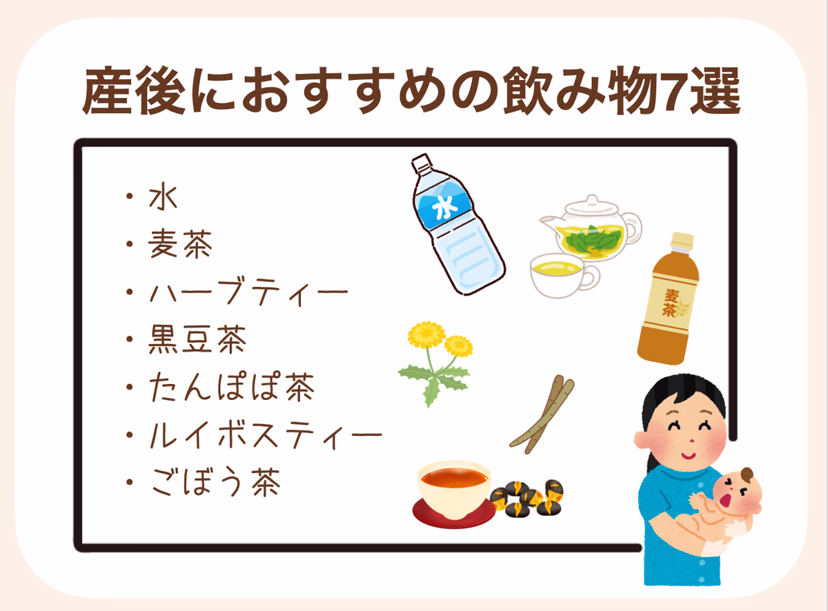 まずは、このポイントをおさえた、産後におすすめの飲み物を7つ紹介します。
