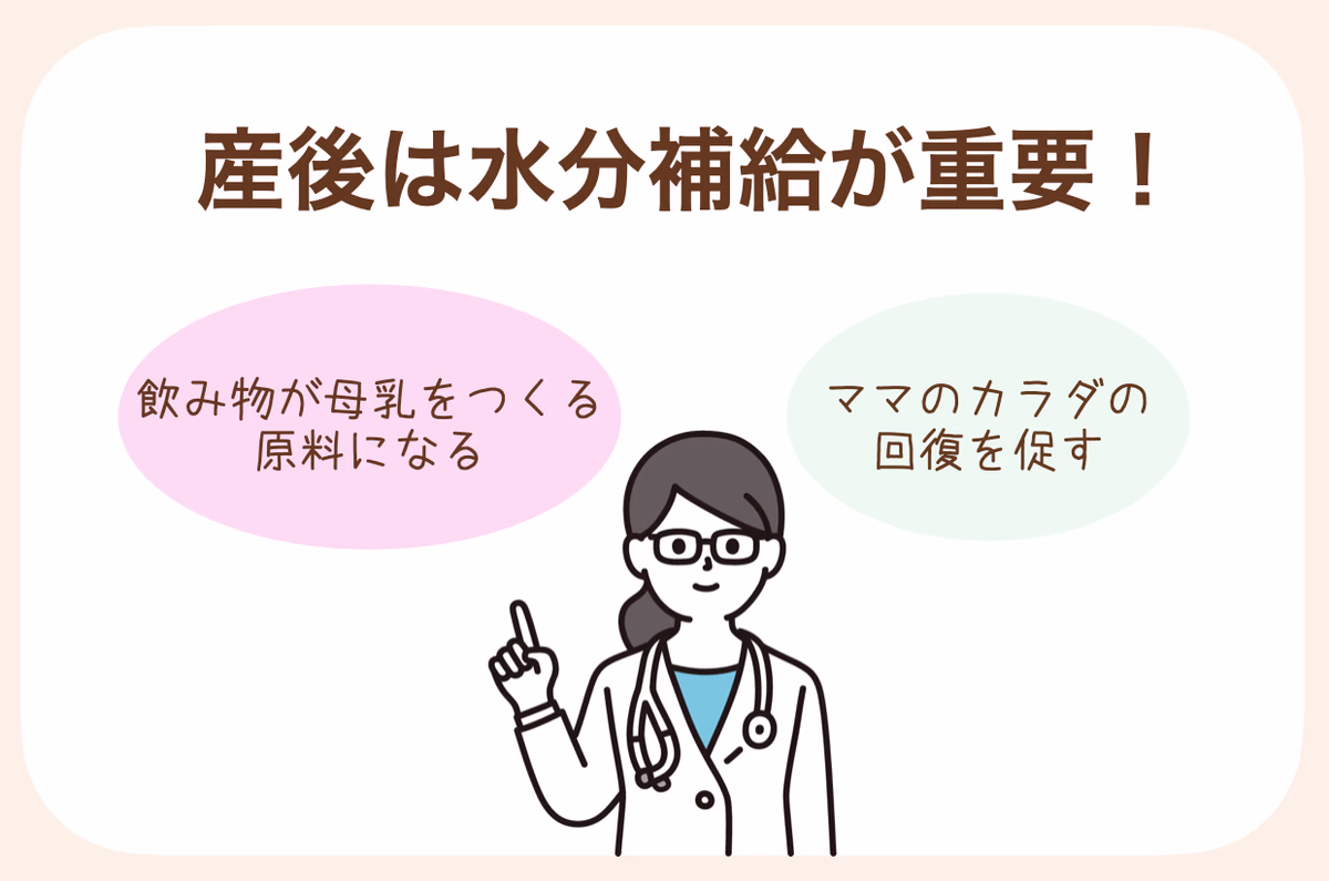 産後のママは、カラダの回復とたっぷりの母乳をつくるために水分摂取が大切です。