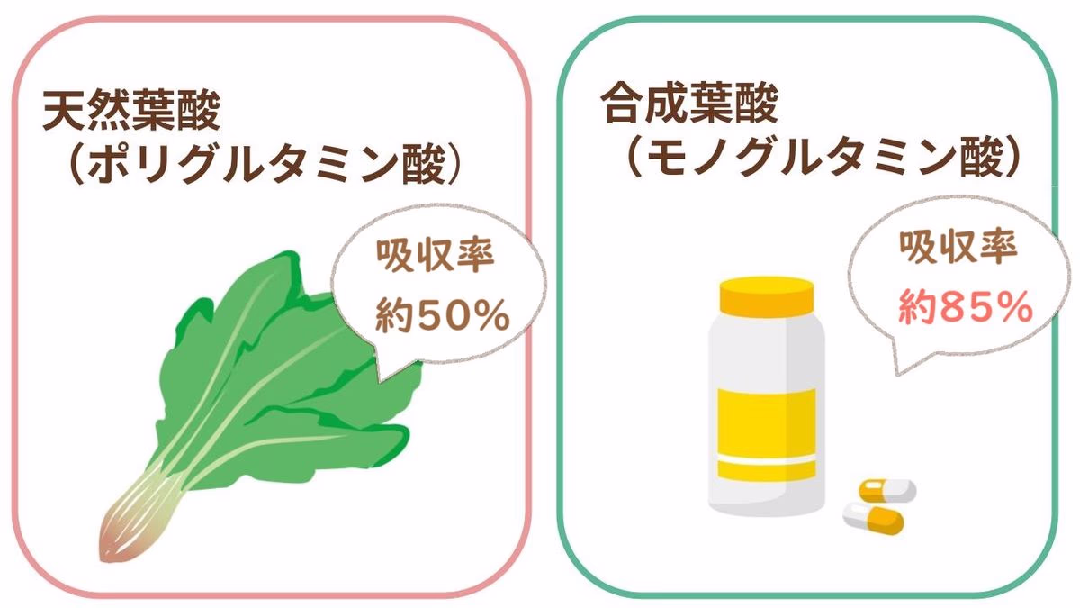 葉酸には、「モノグルタミン酸型葉酸」と「ポリグルタミン酸型葉酸」の2種類があります。