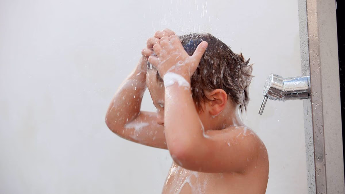 泡で全身を優しく洗ったあとは、シャワーでしっかり流します。石鹸のすすぎ残しがあるとそこから肌荒れなどの皮膚トラブルにつながってしまうおそれがありますので、ていねいに洗い流しましょう。