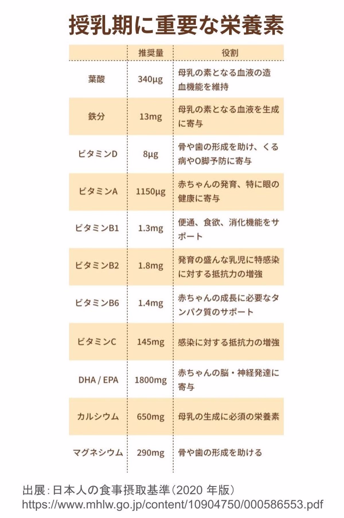 おっぱいの分泌に必要な栄養素はこちらの通りです。