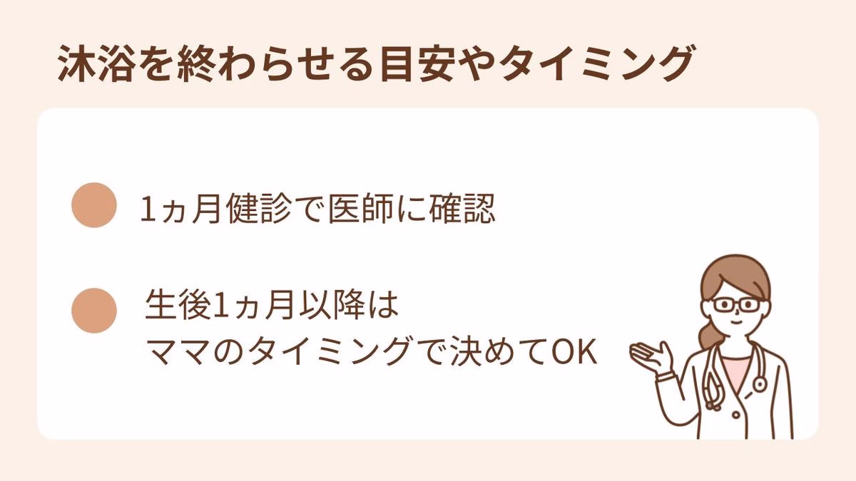 特に問題ない場合は、ママや家族のタイミングで沐浴の卒業タイミングを決めてくださいね。