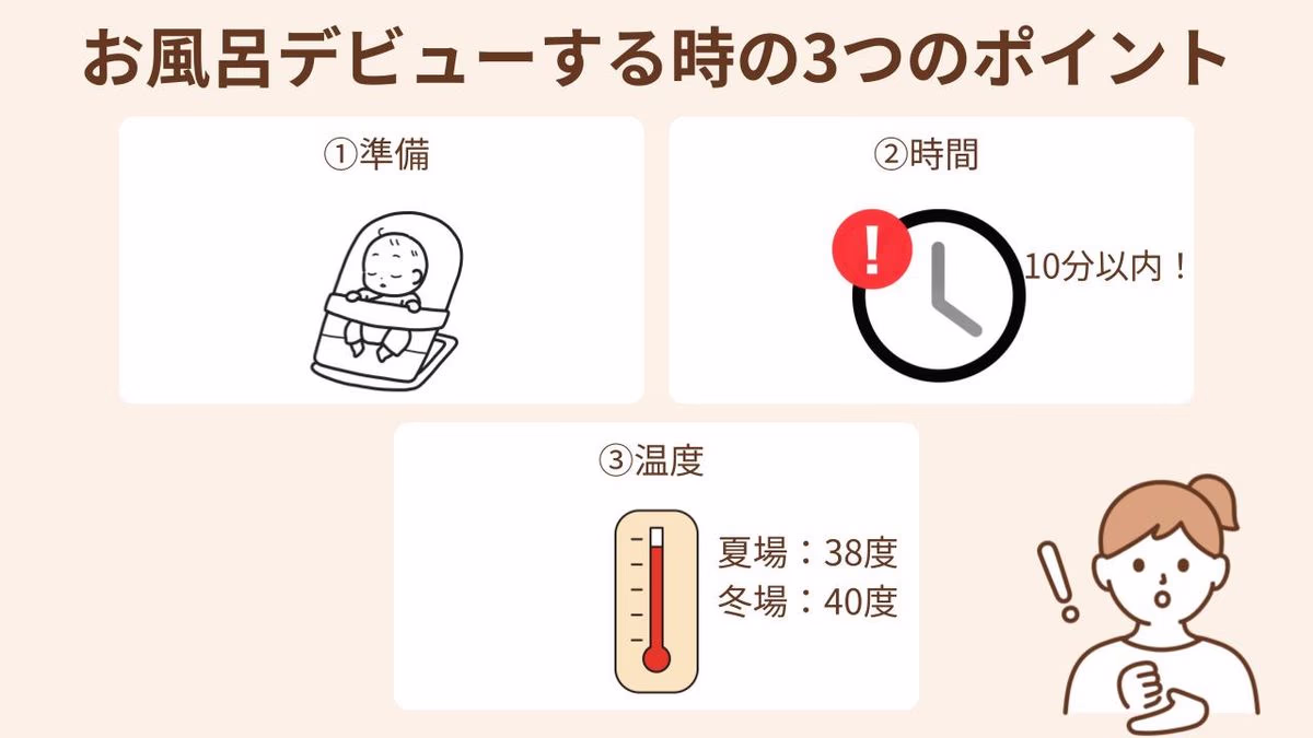 ここでは、お風呂デビューするときの3つのポイントと手順を詳しく紹介します。