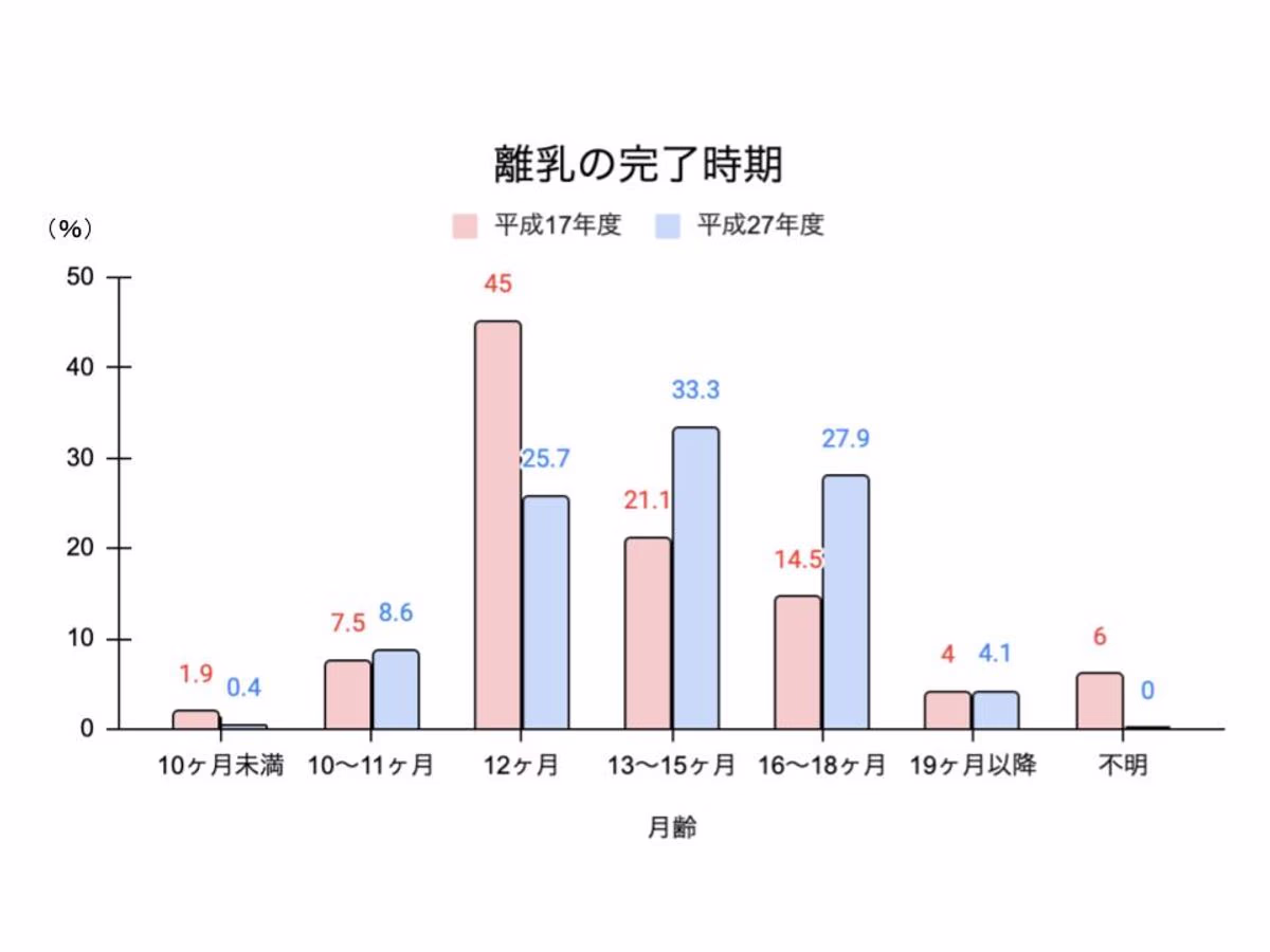 図は離乳完了のタイミングに関して、厚生労働省が行った調査を元に作成したものです。