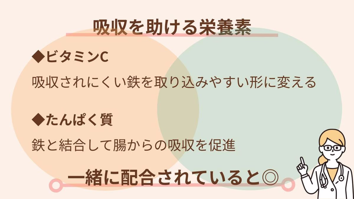 鉄分は単体で摂るよりも、吸収を助ける栄養素と一緒に摂ることで、体に取り込まれやすくなります。