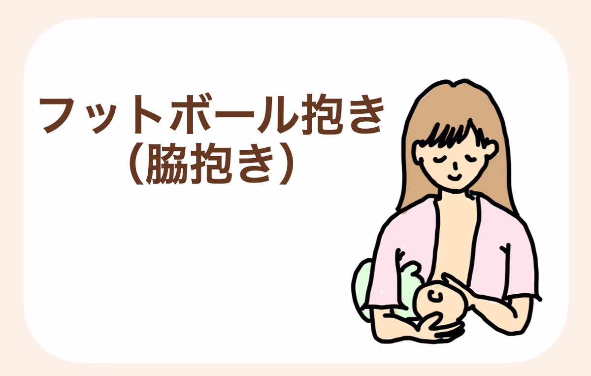 フットボール抱き(脇抱き)は、フットボールを脇に抱えるように赤ちゃんを抱いて授乳する抱き方です。