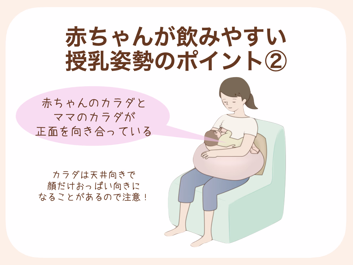 赤ちゃんもカラダごとおっぱいに向かって正面向きになるようにしましょう。